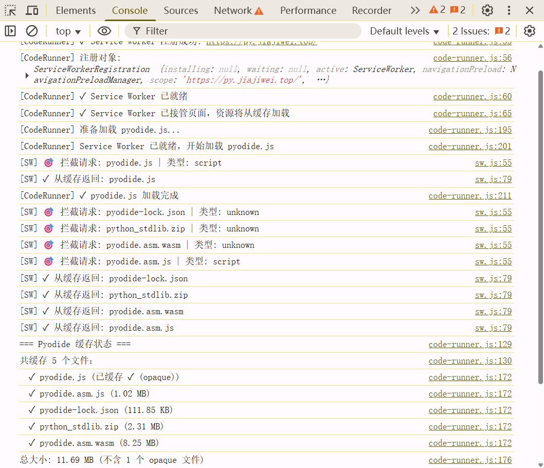 console.log('=== Pyodide 缓存状态 ===');
